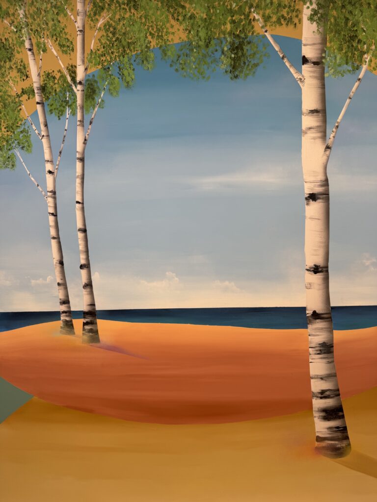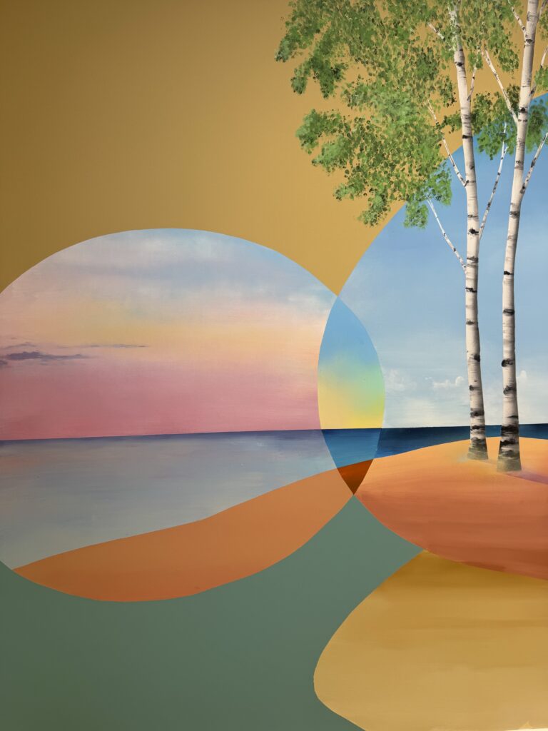 La composition se veut épurée, avec des couleurs douces, un horizon subtil et une légère présence du ciel, apportant une ouverture visuelle et une sensation de souffle dans l’espace.
