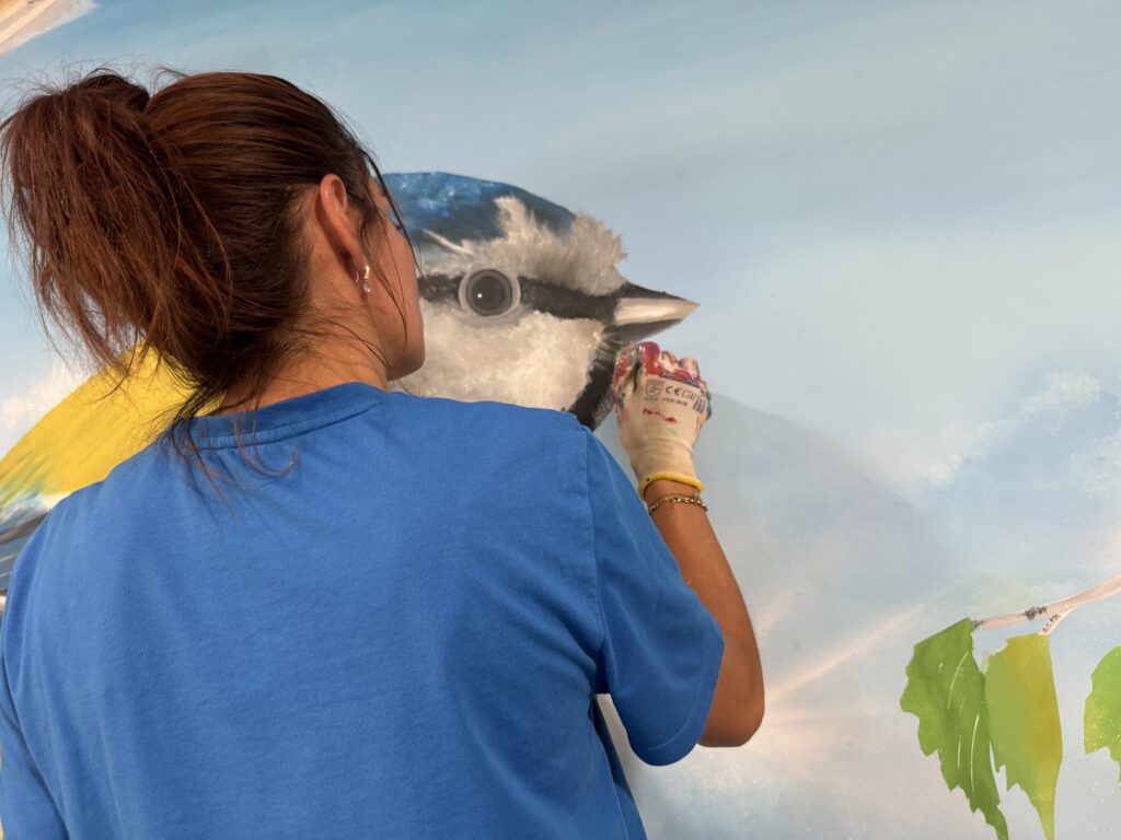 Les thématiques — une baleine, un colibri et une mésange — ont été choisies avec les résidents et les équipes. Les couleurs de fond avaient également été définies en amont afin que chaque fresque s’intègre parfaitement dans l’environnement du quotidien.