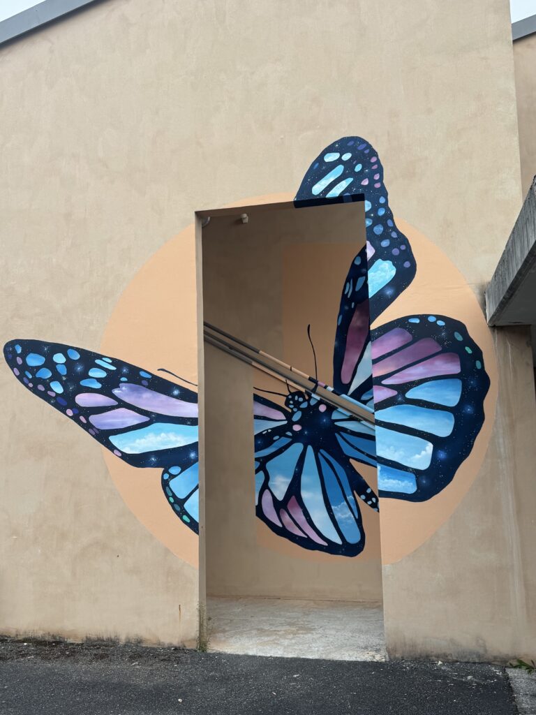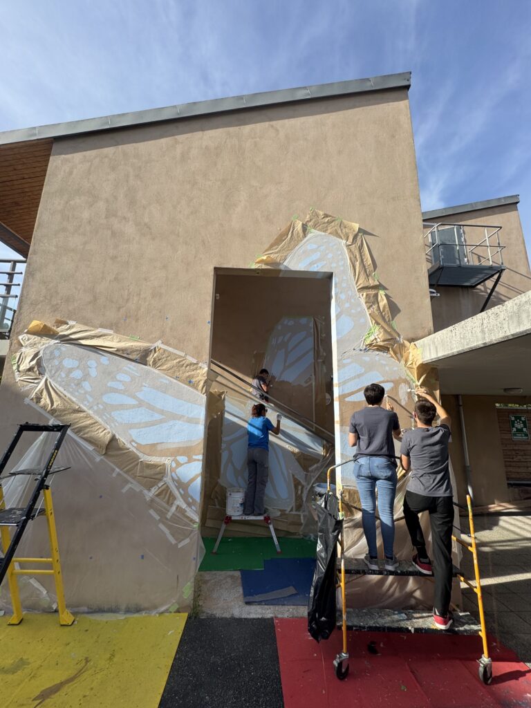 Commandée par la Fondation Optéo, cette intervention avait pour objectif d’impliquer les résidents du dessin jusqu’à la réalisation, en leur permettant d’imaginer un symbole commun : celui d’un papillon imaginaire, baptisé Le Claravallis, en référence directe au nom du foyer.